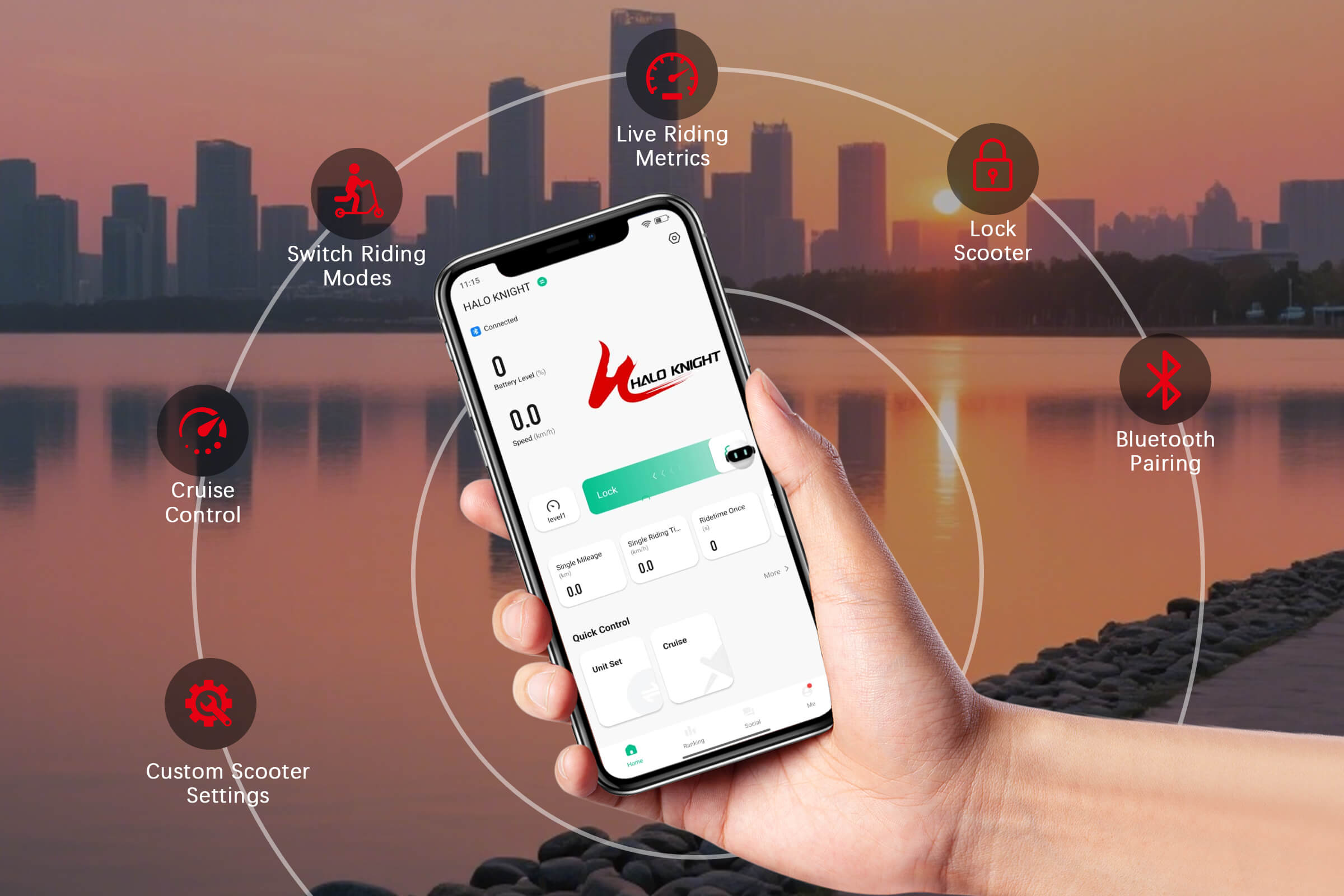 Yes, the T108Pro supports full remote control via its official app. You can download the app by scanning the QR code located on the back of the central display or by searching for it in your app store. Once connected via Bluetooth, you can manage your scooter entirely from your phone, including pairing, locking, monitoring live riding metrics, switching riding modes, activating cruise control, and customizing scooter settings. If you have any questions or need assistance with the app, our support team is available at service@haloknights.com