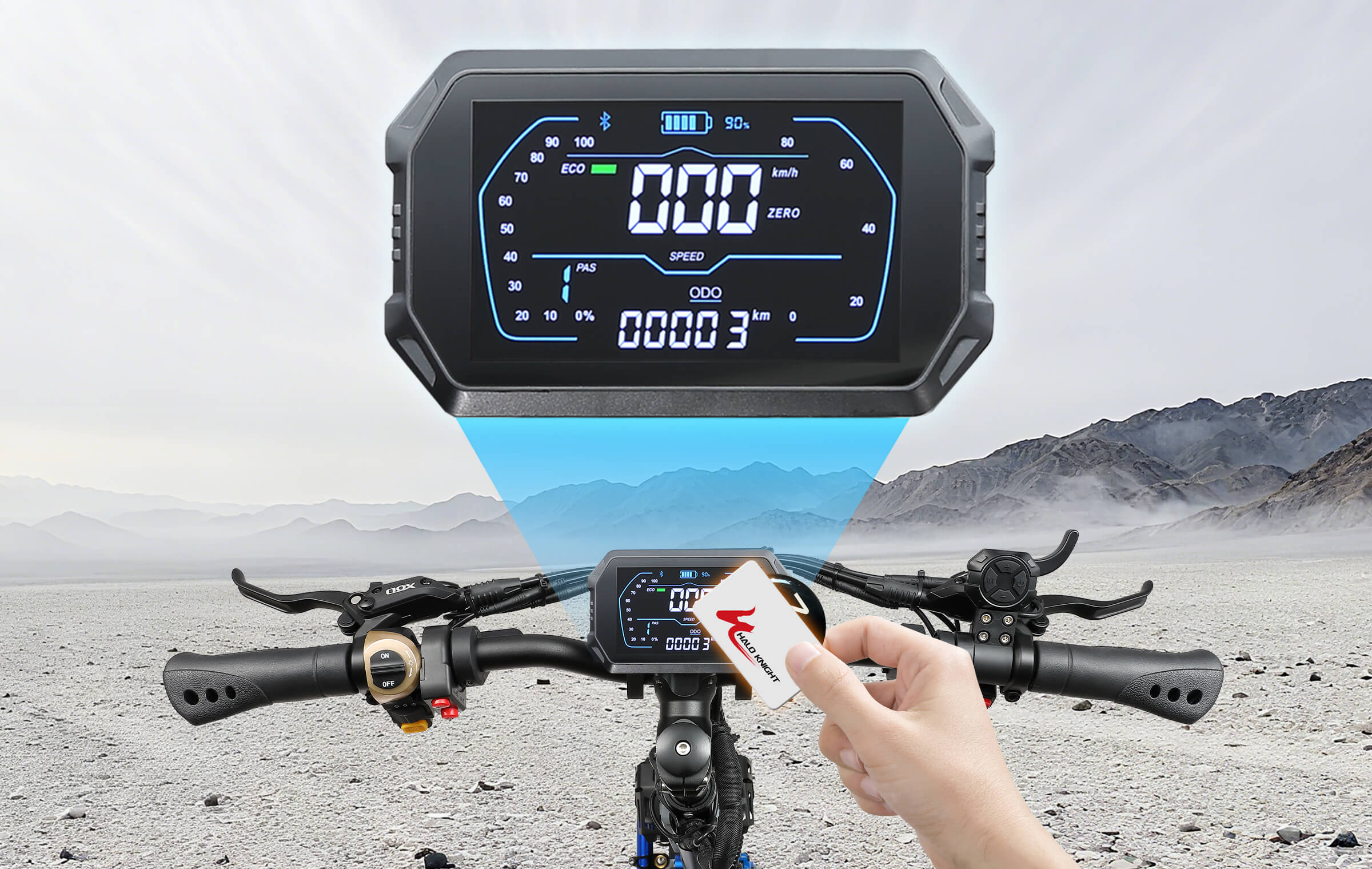 T108Pro’s central LCD clearly shows speed, battery, and ride mode. Responsive controls and NFC keyless unlock ensure smooth, effortless starts, combining precision with elegance.