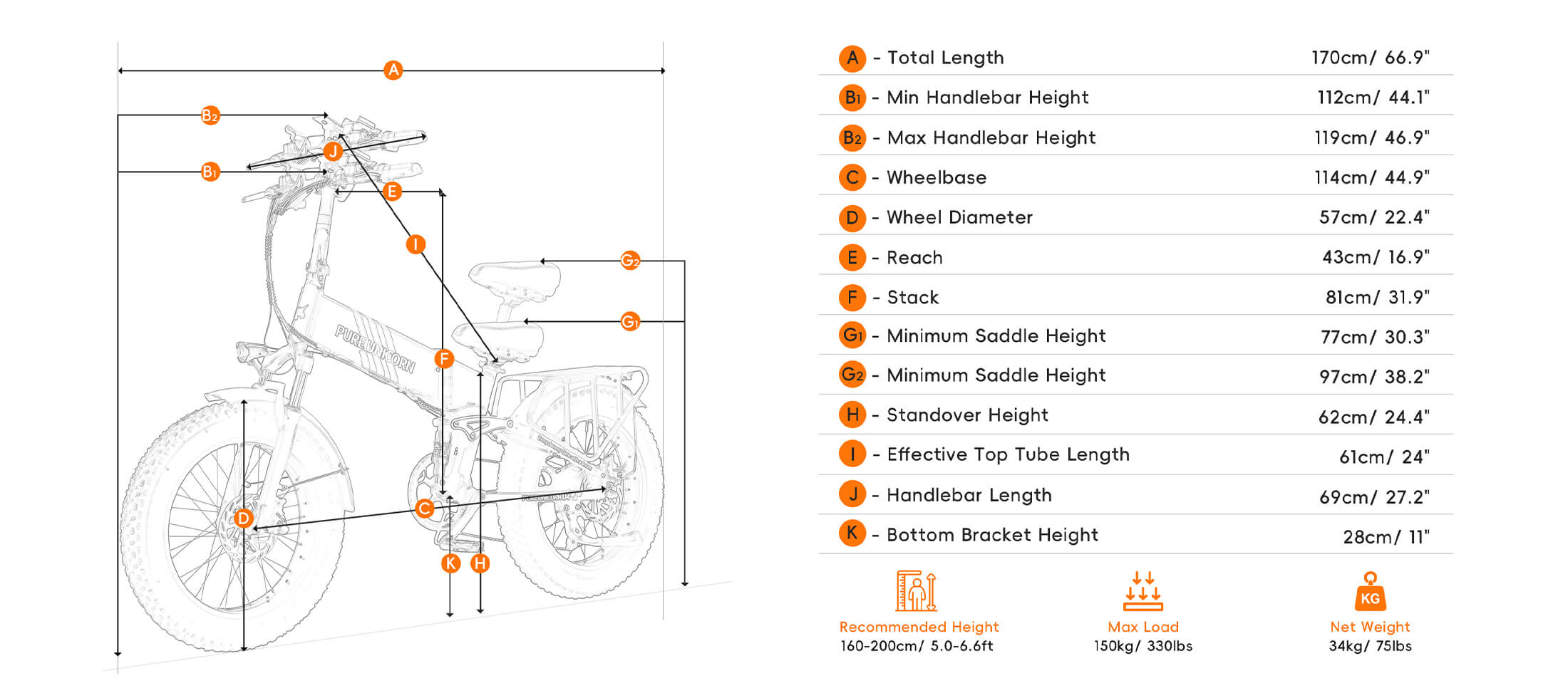 Recommended Rider Height 160-200CM