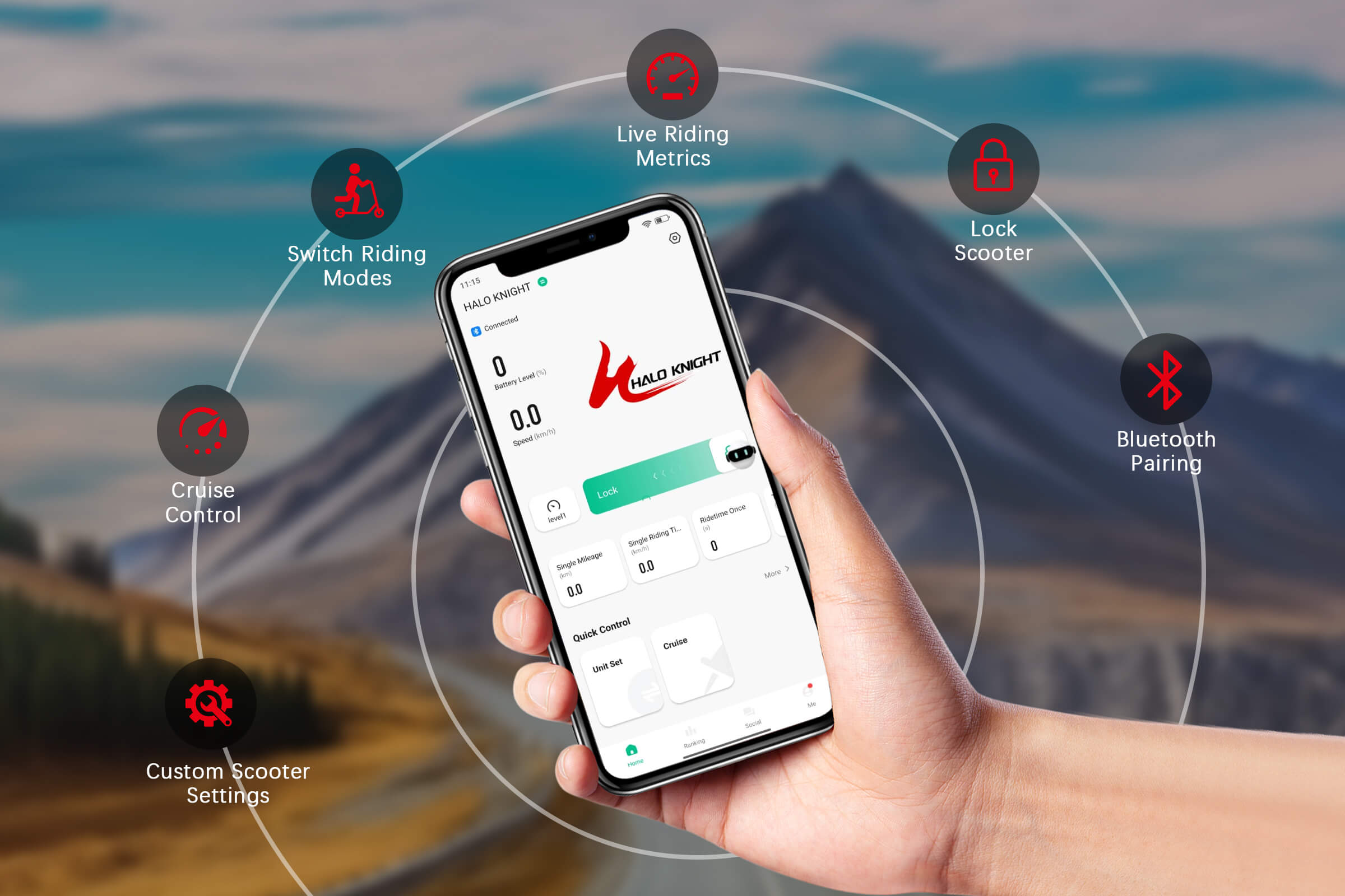 Connect via Bluetooth to lock, monitor, switch modes, cruise, and customize your scooter—all from your phone, for a seamless and intuitive riding experience.