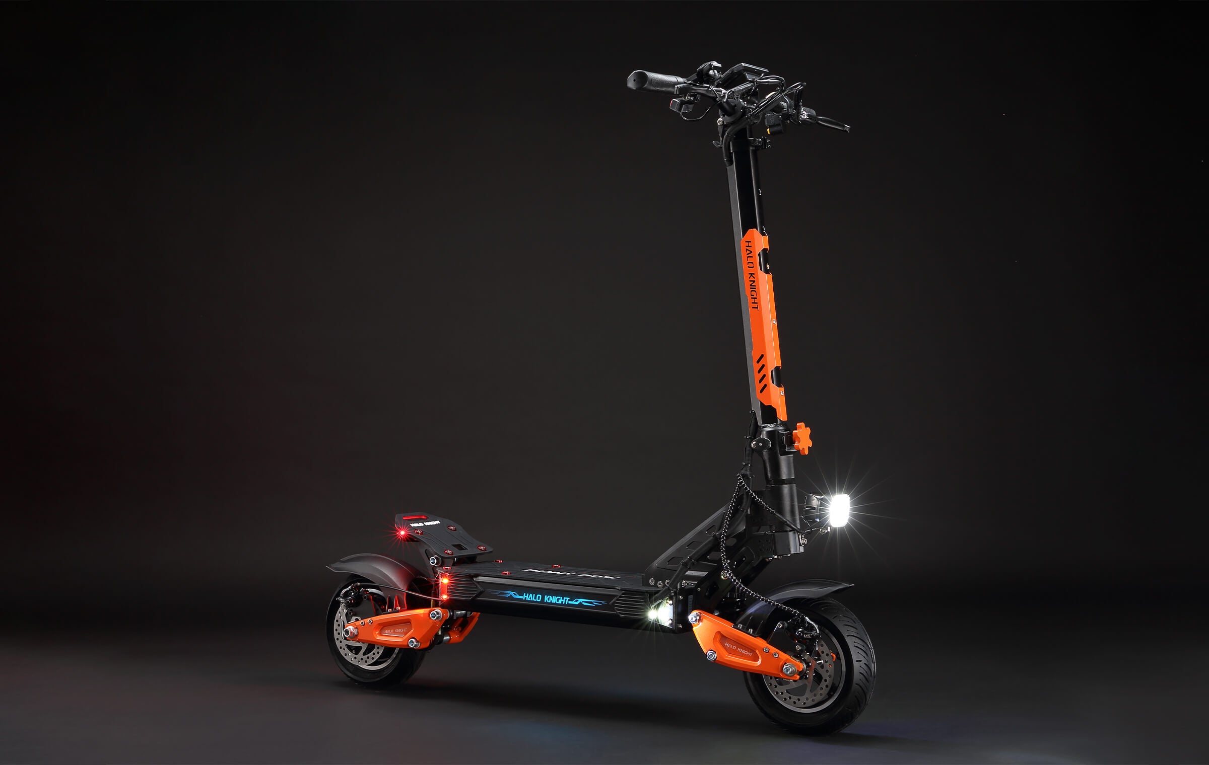 Professional-grade RGB lights, front and rear illumination, brake and rear turn signals ensure maximum visibility and safety.