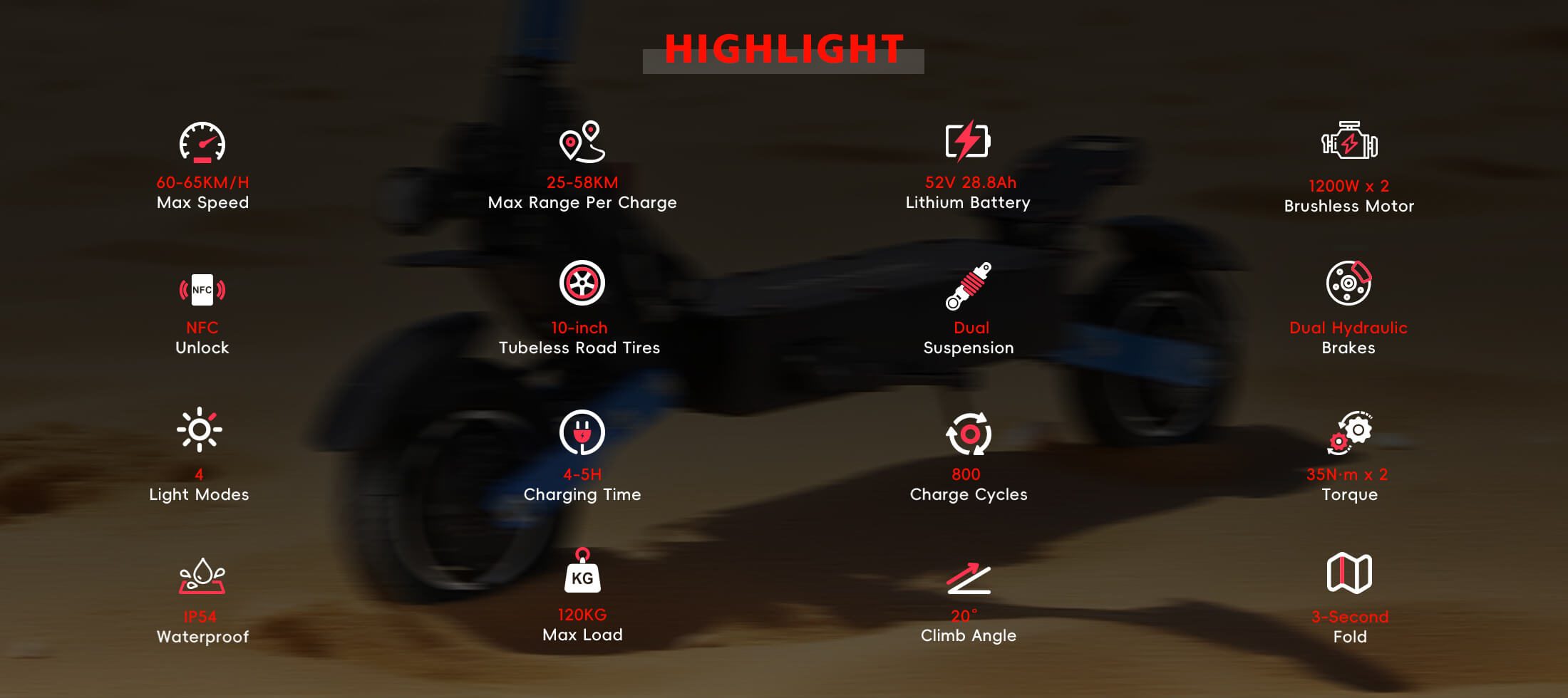 Powered by twin 1200W brushless motors, T108 delivers explosive acceleration and smooth power delivery — pushing speeds up to 65km/h with ease. Whether you're climbing 20° hills or overtaking traffic, the 2 × 35N·m combined torque keeps you ahead.
