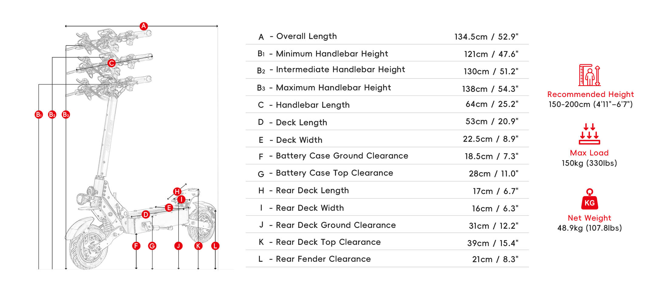 Recommended Rider Height 150-200cm