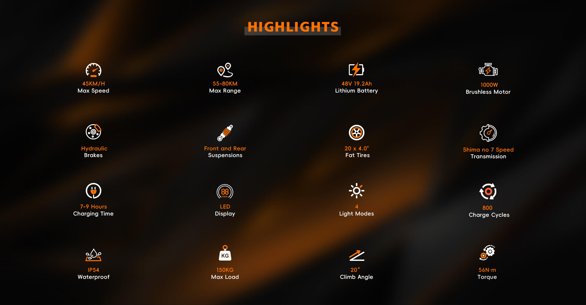 Actual range may vary depending on rider weight, terrain, incline, and riding mode.