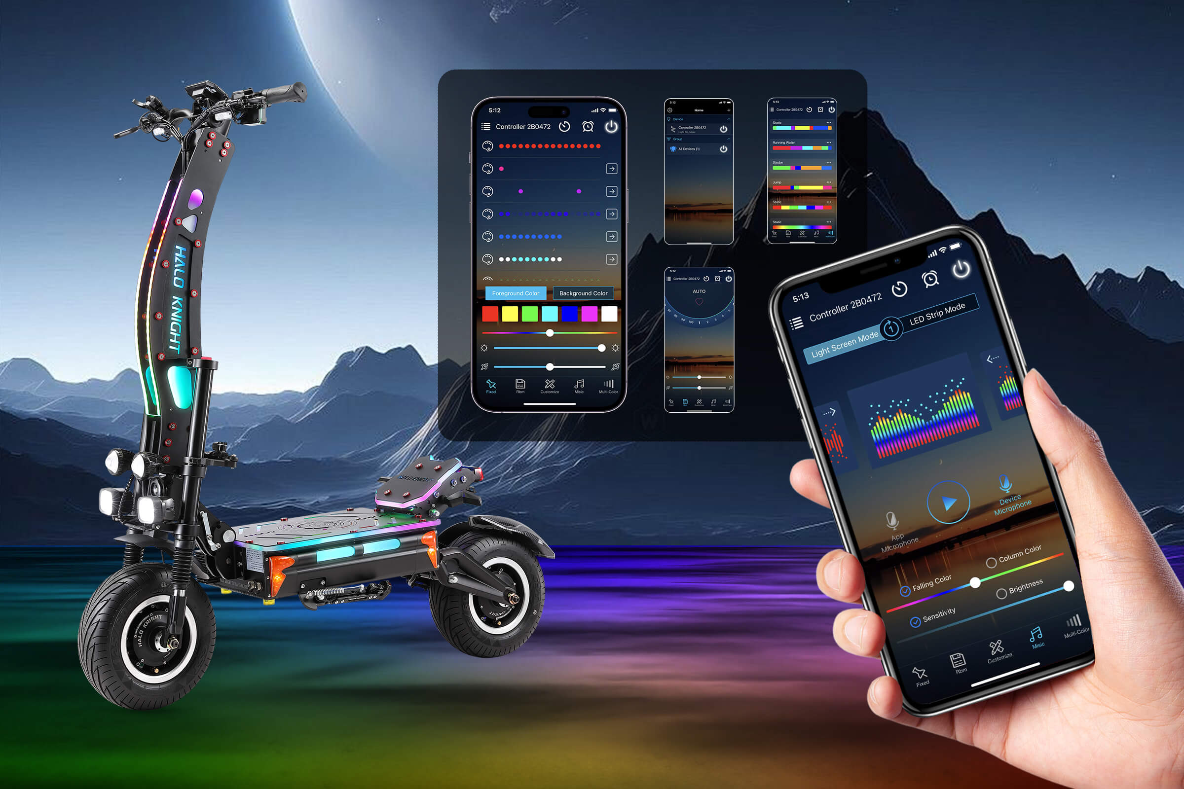 Remote-controllable RGB Lights, Front Light, Rear Light, Brake Light, and Front and Rear Turn Signals deliver ultimate safety, premium style, and head-turning impact. The advanced Radar Tail Light detects vehicles within 100 meters and triggers high-frequency flashing to alert drivers behind, ensuring intelligent protection with unmatched luxury.