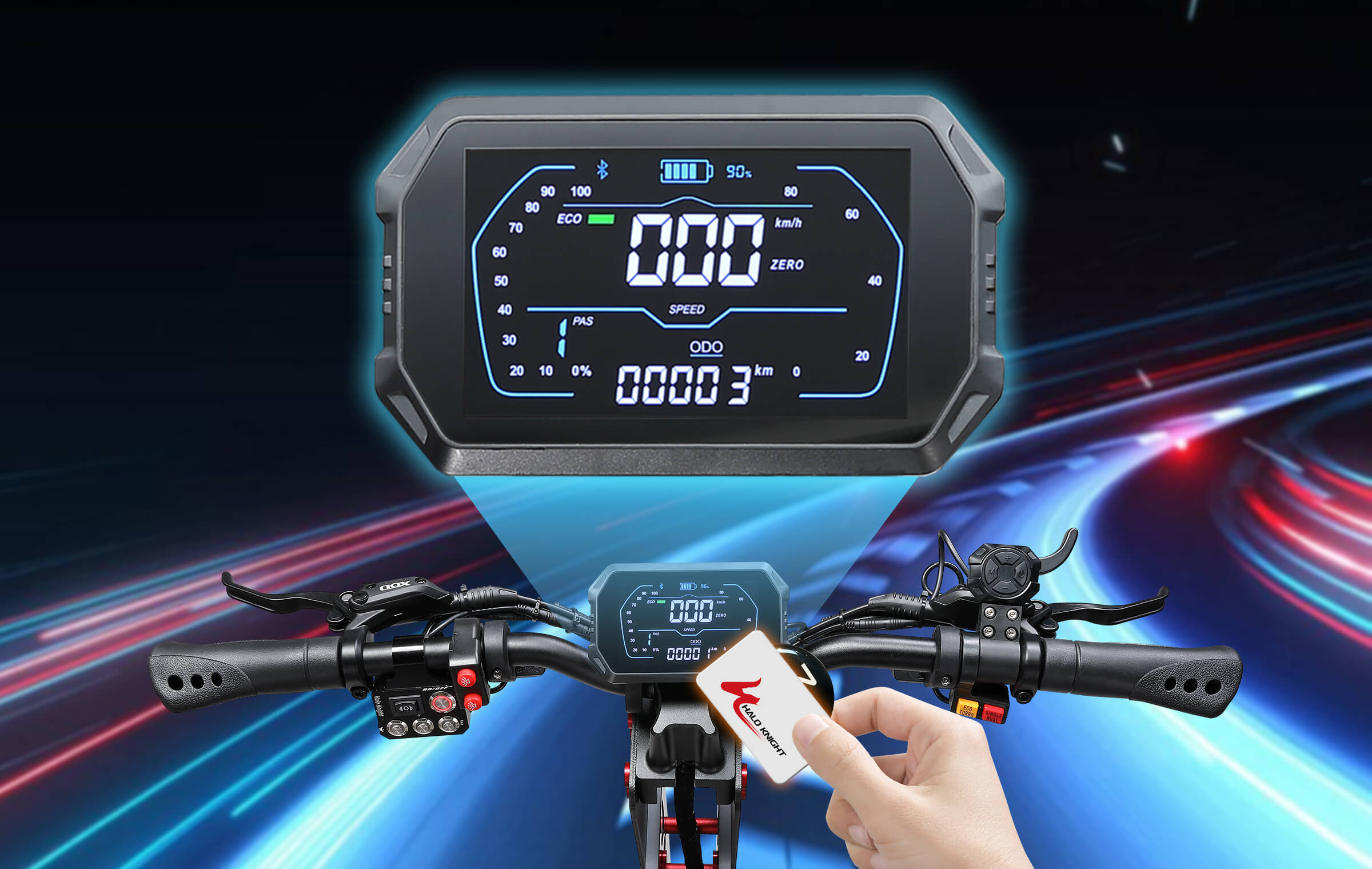 The T107Max features a refined central LCD display, elegantly showing speed, battery, ride mode, and system status at a glance. NFC keyless unlock provides effortless, stylish access, combining precision with premium design for a superior riding experience.