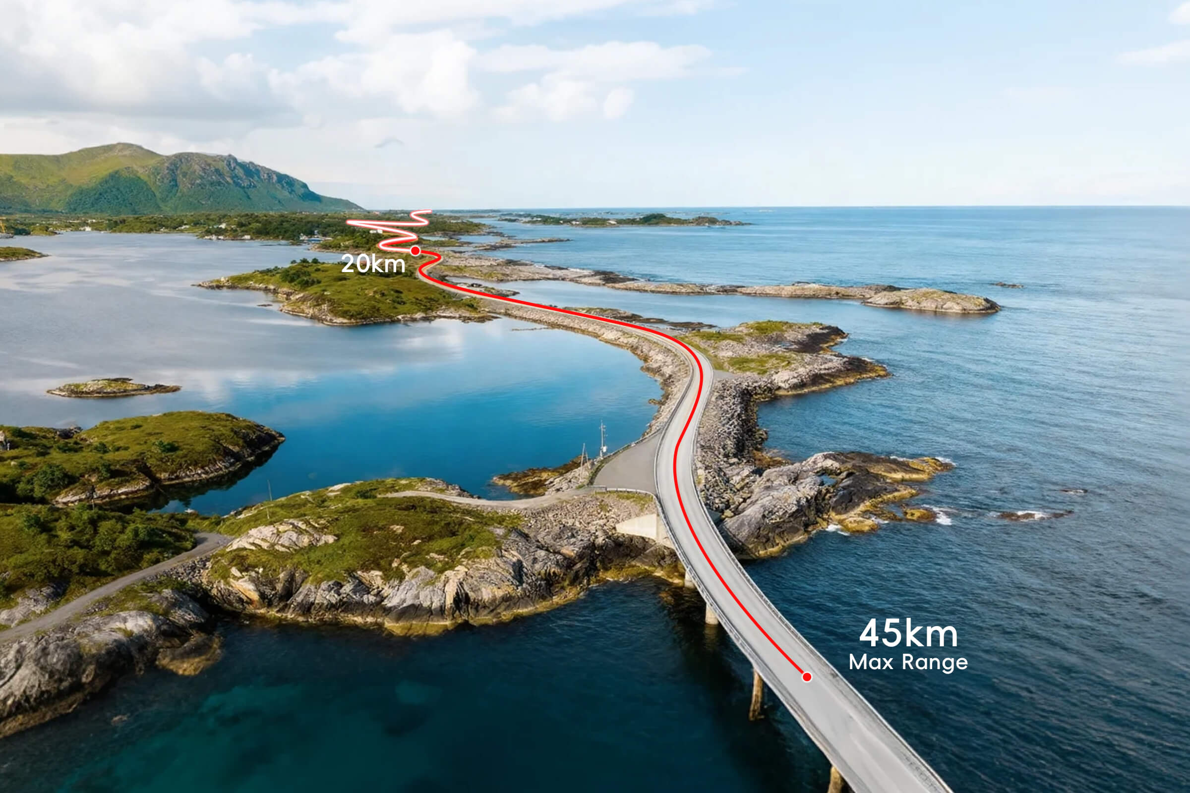 Actual range varies based on rider weight, terrain, incline, and riding mode. Using dual motors may reduce range by up to 50%.