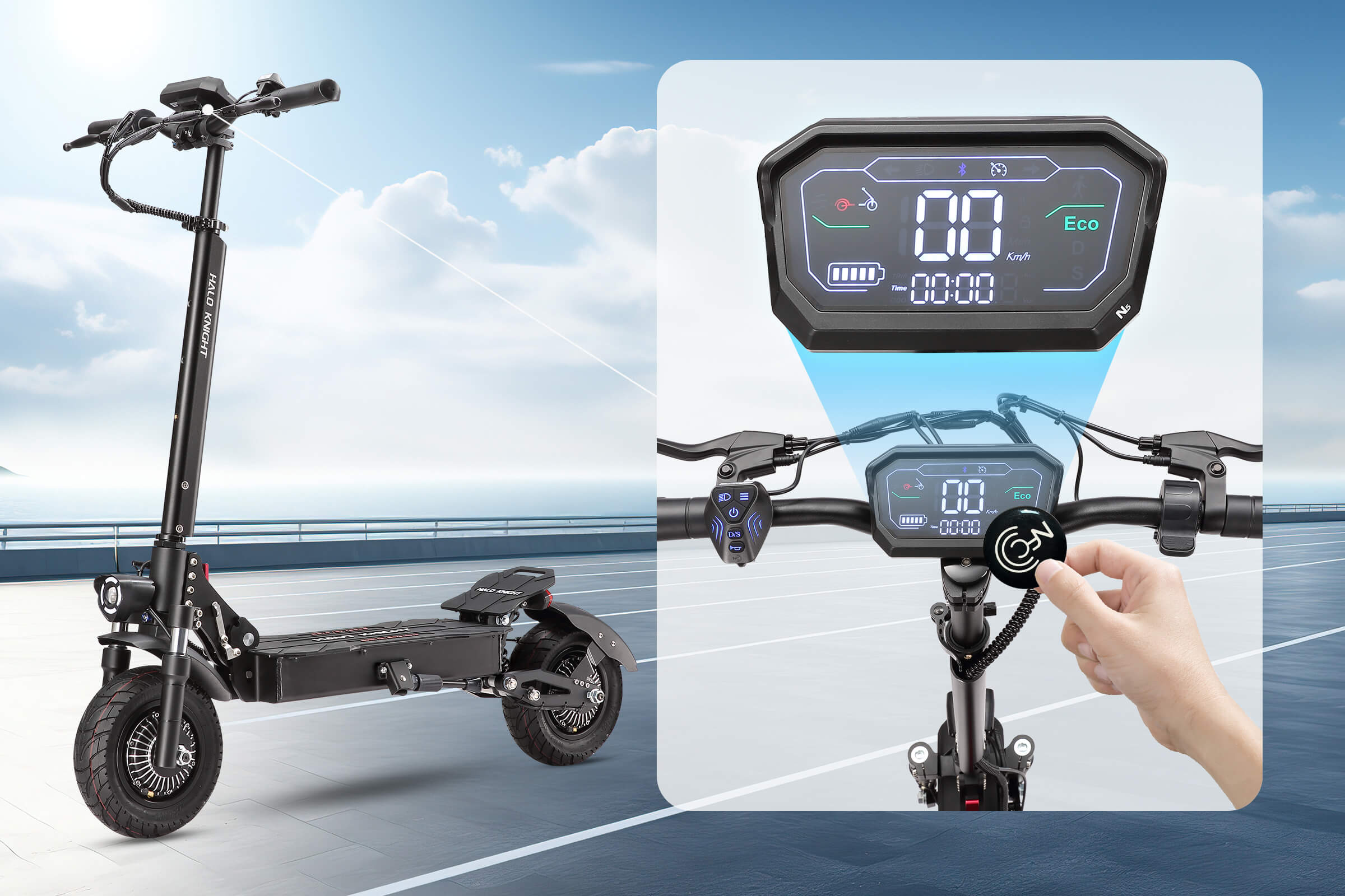 Yes, the T104 can be fully controlled through its official app, which you can download directly from your phone’s app store. Once connected via Bluetooth, the app allows you to pair the scooter, lock and unlock it, monitor live riding metrics, switch riding modes, activate cruise control, control lights, and customize scooter settings. For any questions or assistance with the app, our support team is available at service@haloknights.com.