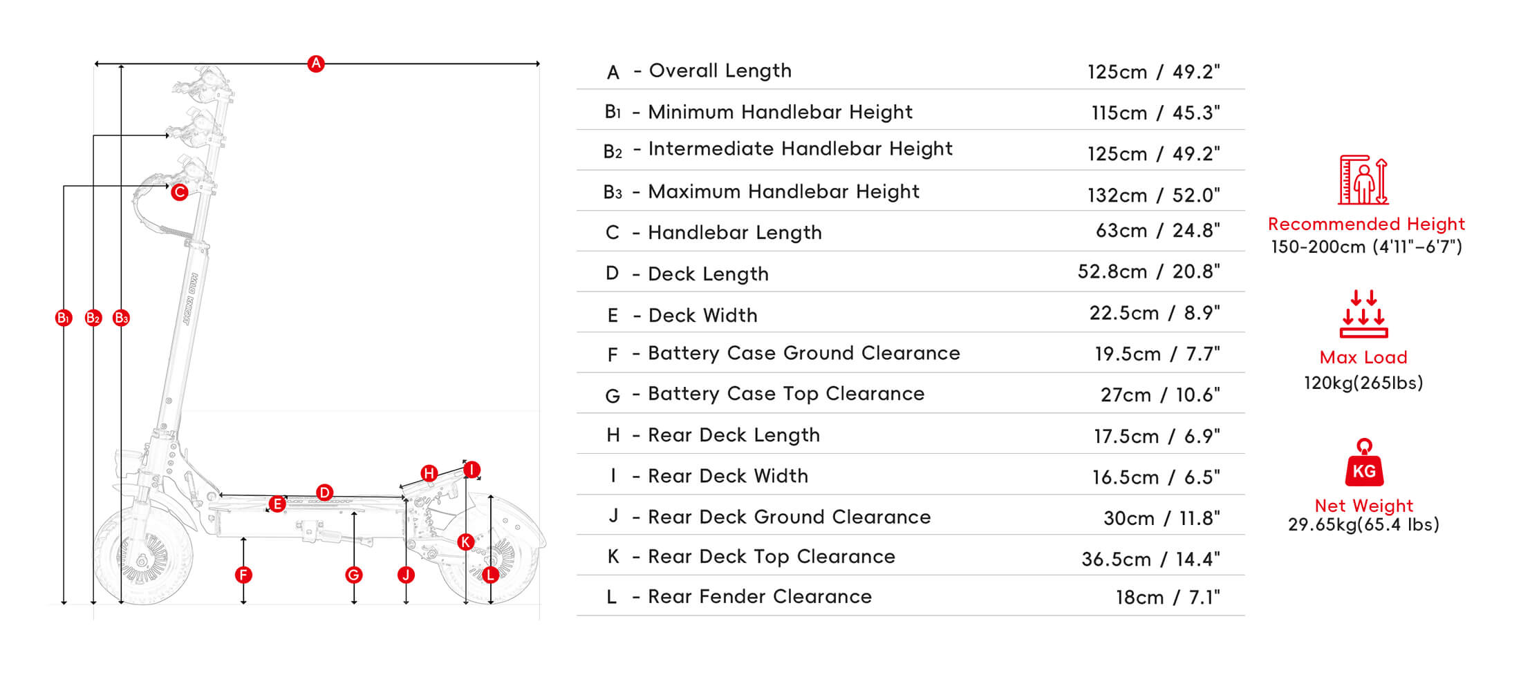 Actual range varies based on rider weight, terrain, incline, and riding mode. Using dual motors may reduce range by up to 50%.